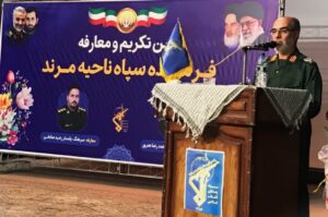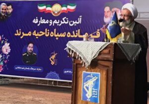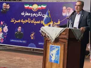 فرماندار شهرستان ویژه مرند نیز ضمن خیر مقدم خدمت حاضرین و مهمانان گرامی گفت: بر خود وظیفه می دانیم که از زحمات سپاه قدردانی و یاد شهدای قهرمان ملی در جنگ تحمیلی و بخصوص جنگ ۱۲ روزه را گرامی داشته و بایستی سپاس و احترام بگذاریم.