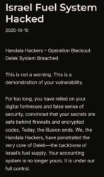 🔹امروز این توهم به پایان میرسد و ما به هستهٔ اصلی ستون فقرات تأمین سوخت شما نفوذ و همهچیز را خارج کردهایم؛ پایگاه دادهٔ کامل همهٔ اطلاعات مشتریان، قراردادهای محرمانهٔ نظامی که فکر میکردید غیرقابل دسترس هستند.