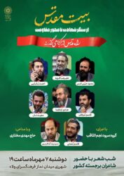 گفتنی است در این برنامه شاعران برجسته کشور آقایان علیرضا قزوه، محمود حبیبی کسبی، احمد بابایی، هادی جانفدا، قاسم صرافان، مجید تال، قاسم نعمتی شعر خوانی خواهند داشت.